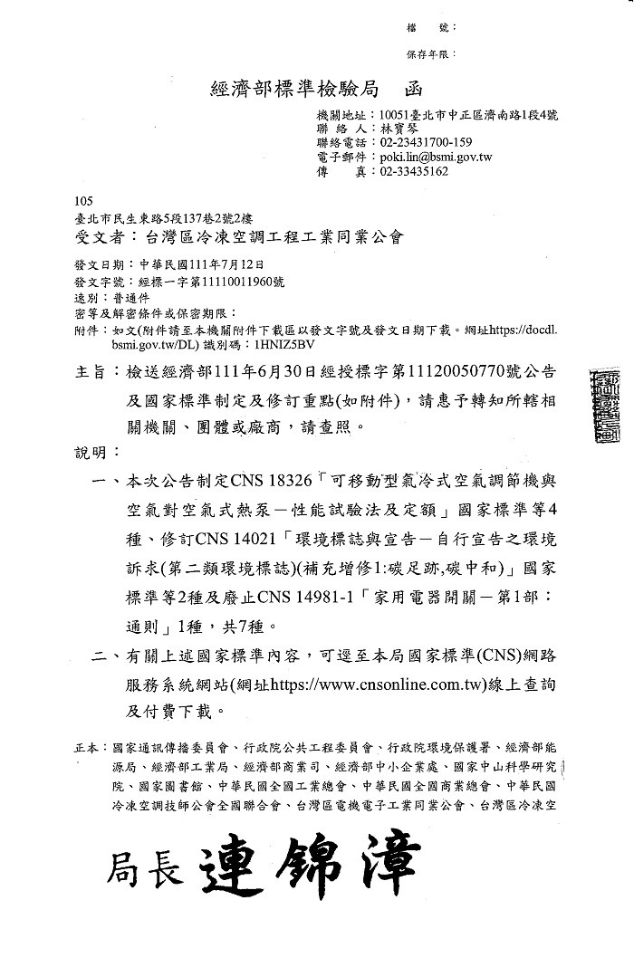 各位業界朋友、會員 請注意!--- 原『經濟部工業局』已升格為『經濟部產業發展署』,若您需要申請冷凍空調業許可、重新許可或其他變更事項時,採用郵寄辦理者,應檢附書件,依序裝訂掛號郵寄至(54003南投市中興新村省府路4號)經濟部產業發展署收,繳費請用郵政匯票,抬頭:經濟部產業發展署。