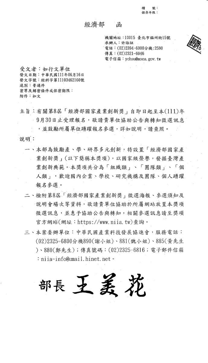 經濟部-第8屆「經濟部國家產業創新獎」,即日起至9月30日止受理報名