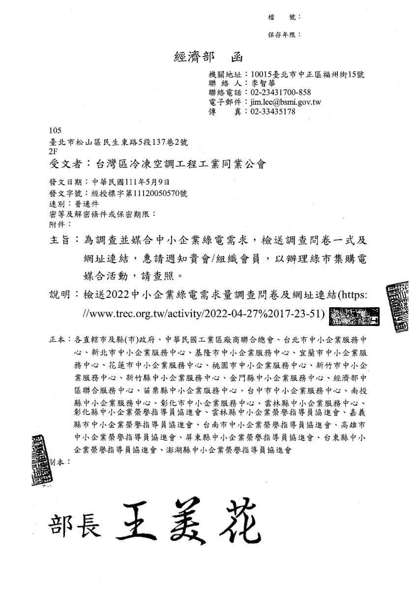 經濟部-「2022中小企業綠電需求量調查問卷」,請參閱