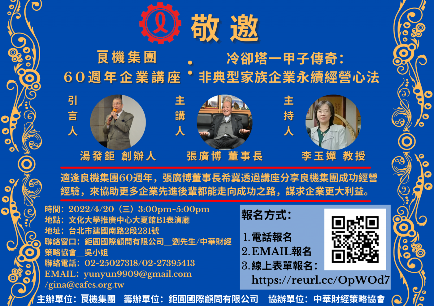 講題:冷卻塔一甲子傳奇:非典型家族企業永續經營心法