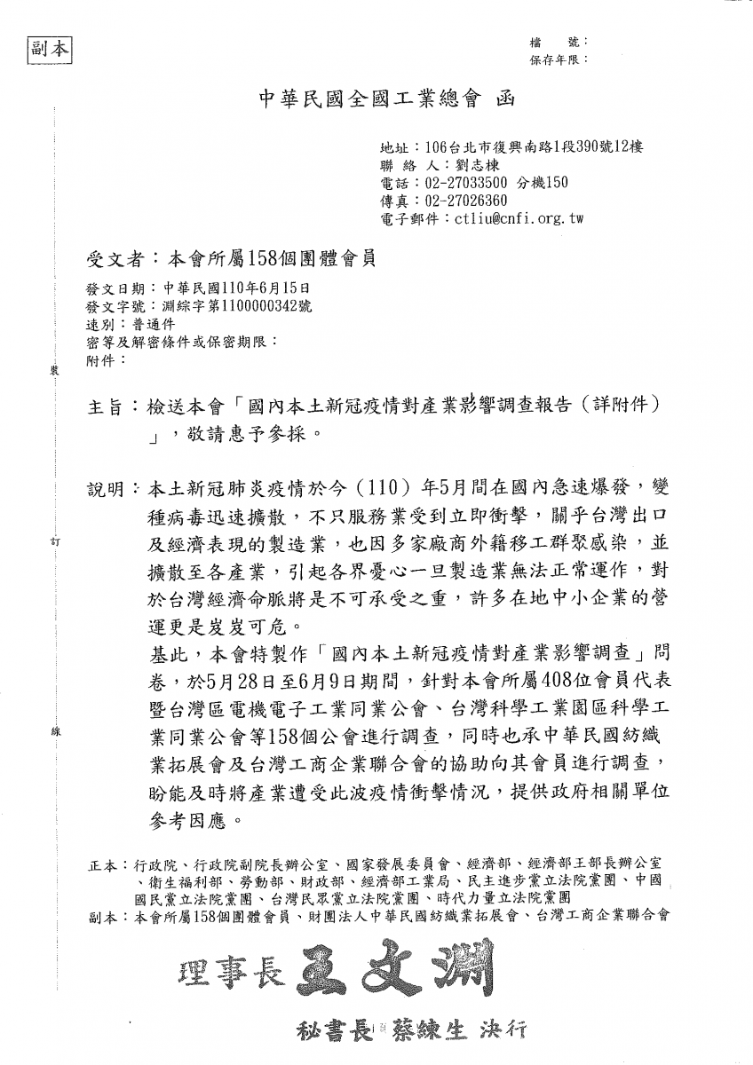 「國內本土新冠疫情對產業影響調查報告」,請參閱