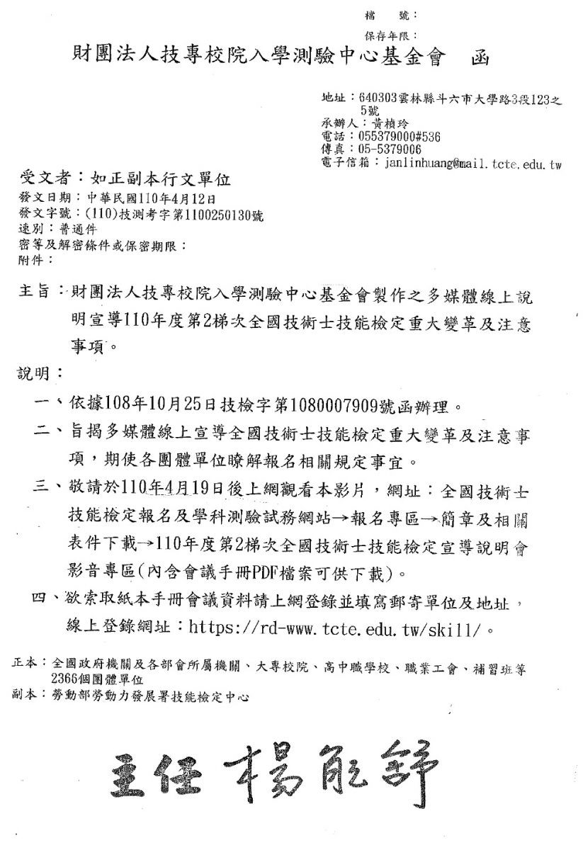 110年度第2梯次全國技術士技能檢定說明會 影音版 https://youtu.be/Z2tTFk0u_hY