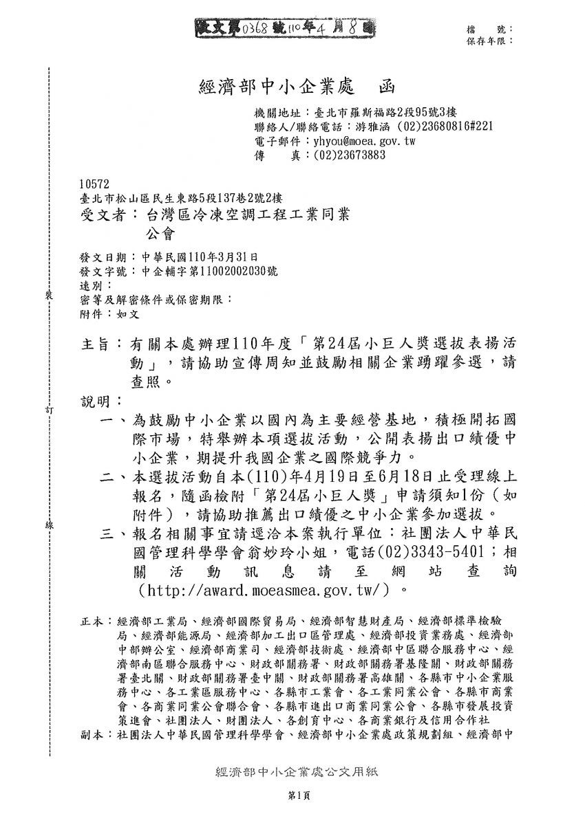 經濟部中小企業處—第24屆小巨人獎選拔表揚活動