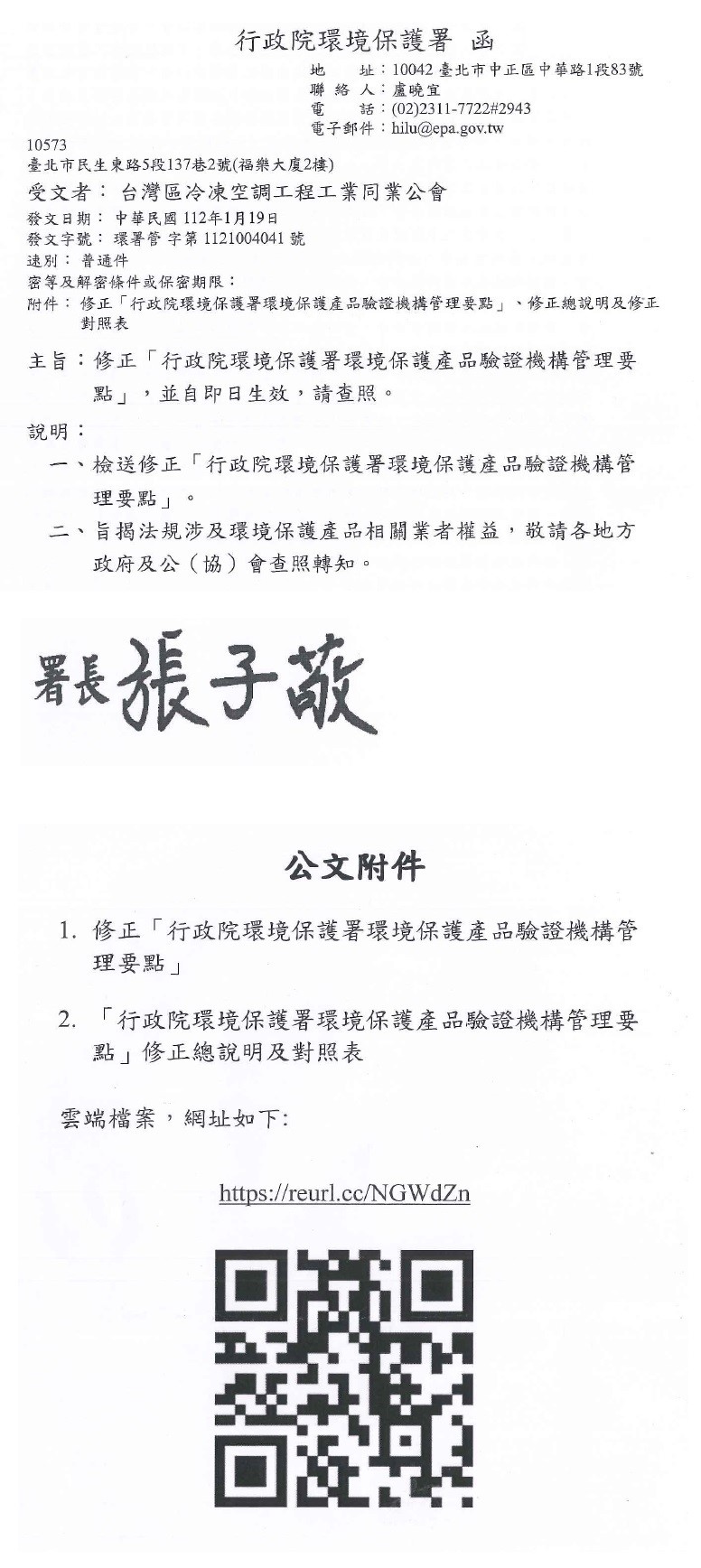 行政院環境保護署修正「行政院環境保護署環境保護產品驗證機構管理要點」,並自即日起生效。